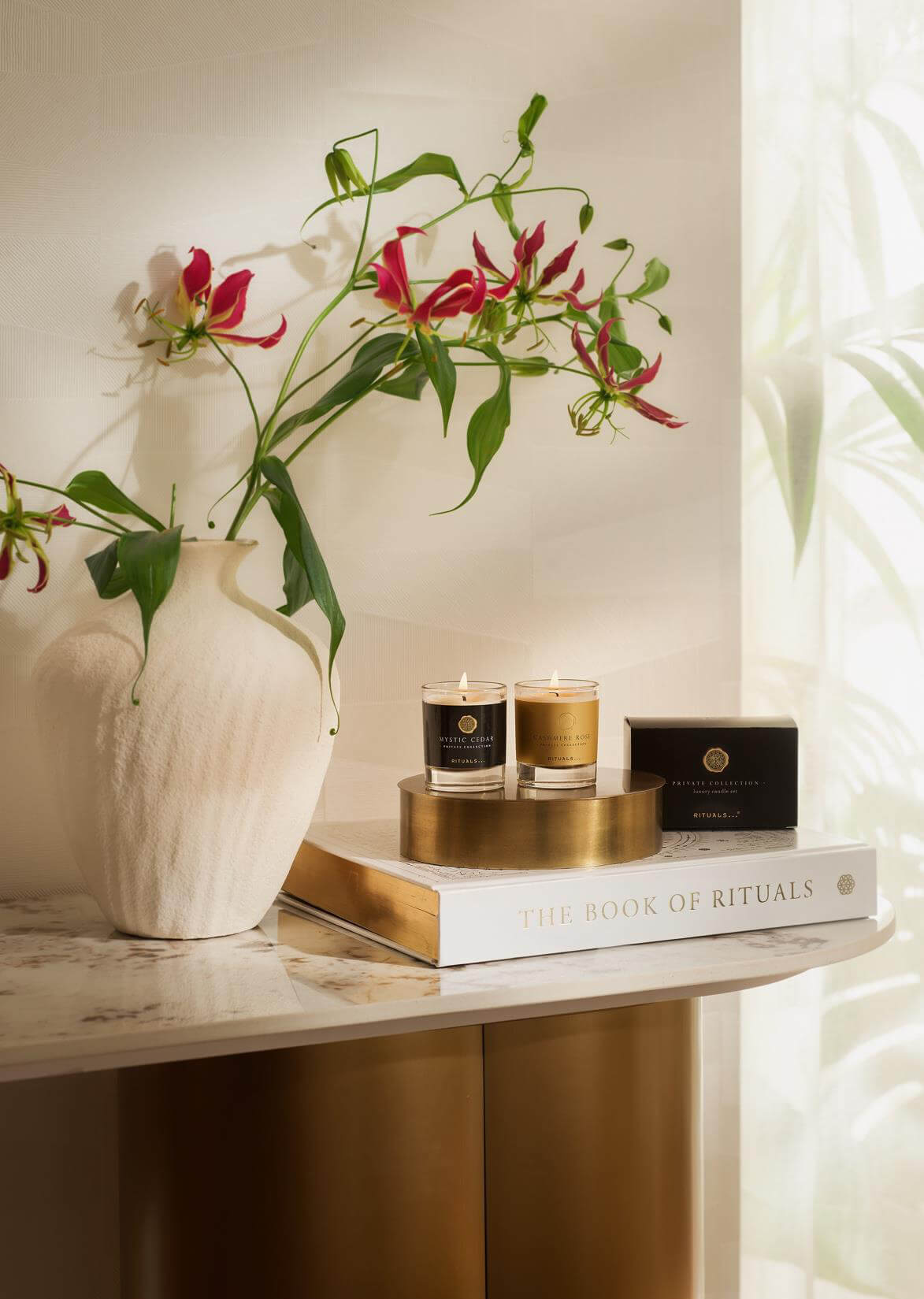 Ab einem Einkauf von 50 €* schenkt Rituals Ihnen ein exklusives Candle Set von der Private Collection gratis dazu. Dieses edle Kerzenset vereint zwei neue Duftkreationen aus der Private Collection –Cashmere RoseundMystic Cedar. Jede Kerze (60g) entfaltet ihre eigene, raffinierte Atmosphäre und bringt stilvolle Eleganz in jeden Raum.