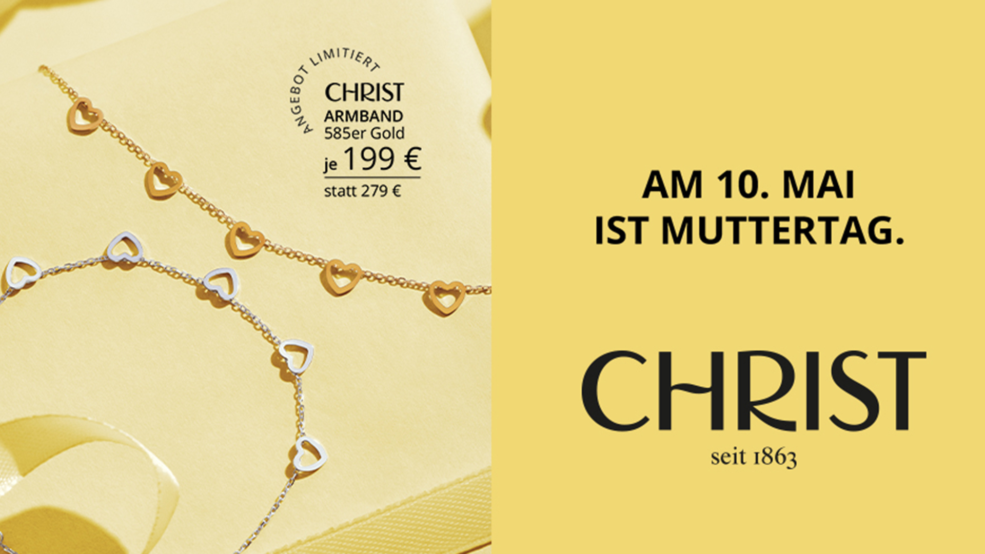 Sie ist da, bevor du fragst. Sie denkt mit, geht mit und gibt dir Halt – in großen Momenten und ganz besonders in den kleinen. Mit Schmuckstücken von CHRIST schenkst du etwas, das bleibt und zum Muttertag eine ganz besondere Bedeutung bekommt: eine tägliche Erinnerung an eure Verbindung. Das filigrane Armband von CHRIST aus 585er Gold vereint zeitlose Eleganz mit liebevoller Symbolik. Zarte, offene Herzmotive reihen sich entlang der feinen Ankerkette und machen das Schmuckstück zu einem besonderen Ausdruck von Nähe und Verbundenheit.