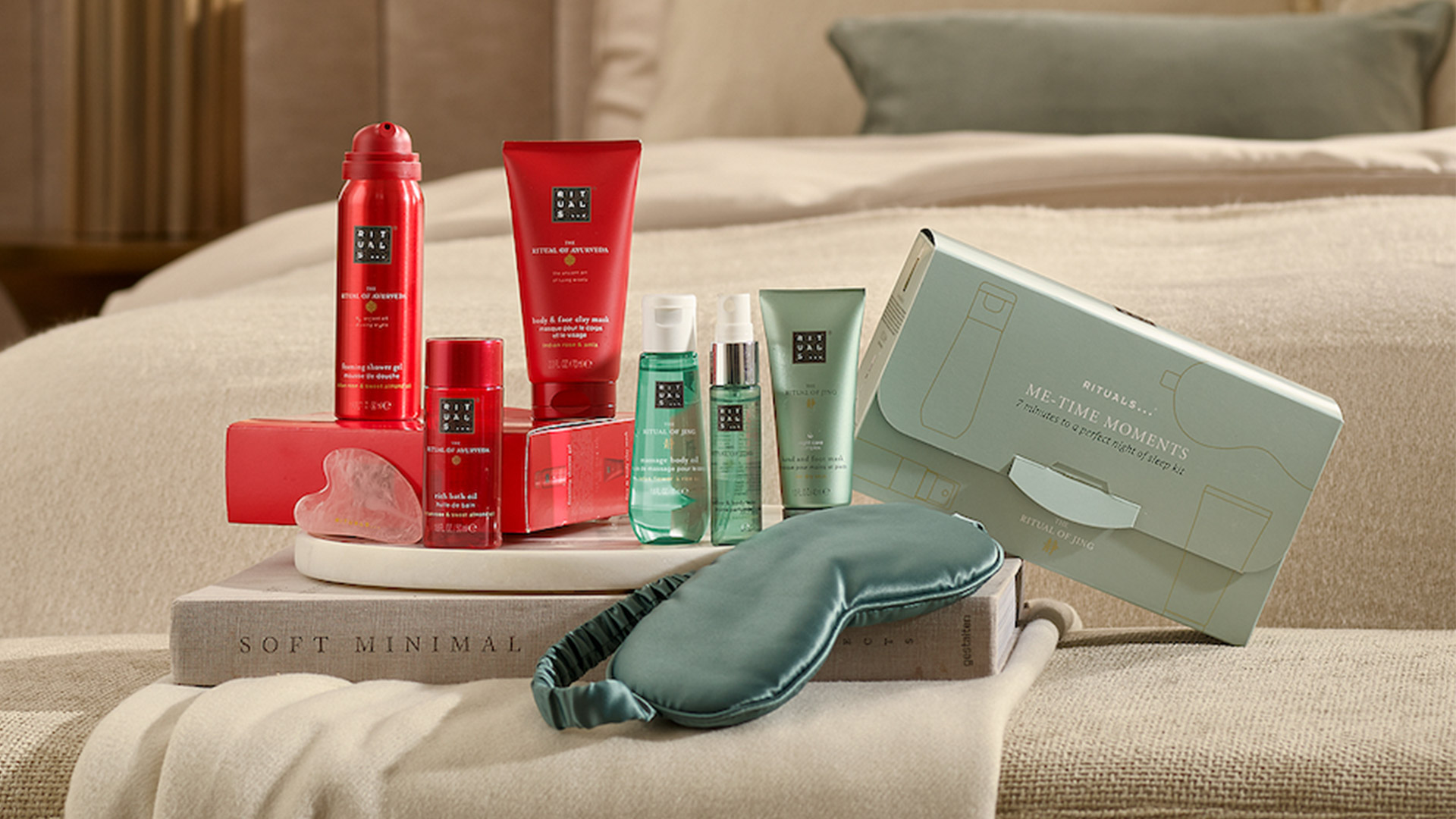 Entdecken Sie die neuen Me-Time Gift Sets zum verschenken oder selbst verwöhnen. The Rituals of Ayurveda begesitert mit einer Duftnote aus indischer Rose und Mandel, während The Ritual of Jing durch Lavendel beruhigt und entspannt.
