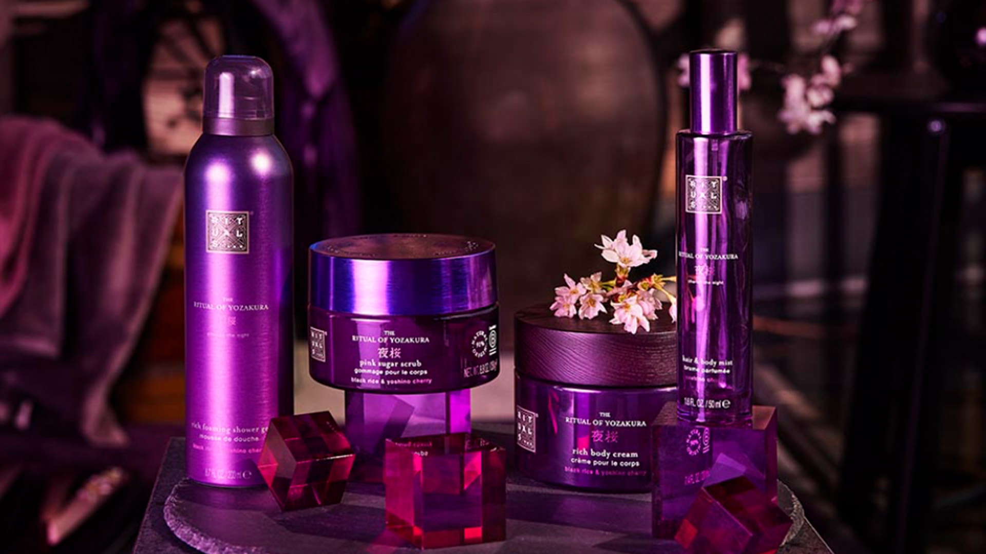 Eine luxuriöse Erweiterung der Rituals of Yozakura Kollektion mit neuen Produkten aus dem Bereich Bad, Raum und Autodüfte, sowie Beauty begeistern mit intensiven und blumigen Duft. Highlight sind das neue Shimmery Lip Oil, Handseife und -Creme im Nachhaltigen Glasspender sowie Autoparfüms.